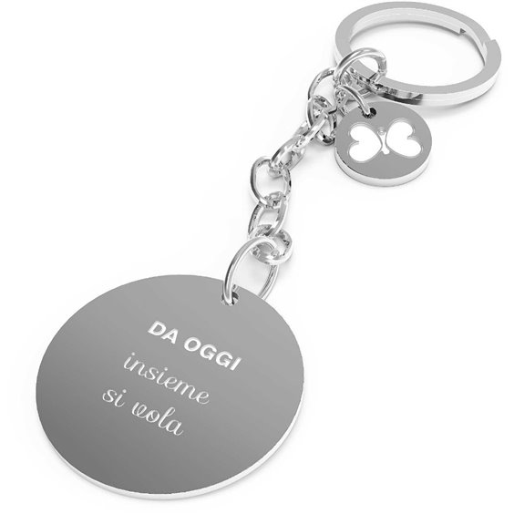 Portachiavi in acciaio della linea 10 buoni propositi, con inciso DA OGGI insieme si vola