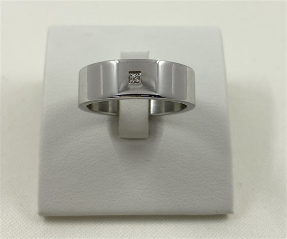 ANELLO UNISEX ALESSANDRO TESTI REBECCA DESIGNER MADE IN ITALY, IN BRONZO RODIATO A FASCIA CON DIAMANTE E LOGO.