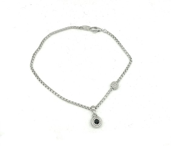 Bracciale in argento con maglia veneziana con charm pendente con zircone nero.