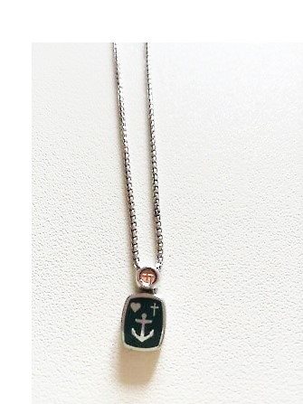 Collana in argento veneziana rotonda con ciondolo smaltato con croce, cuore e ancora, che indicano fede, speranza, carità. Incise dietro le parole Faith, Hope, Charity.