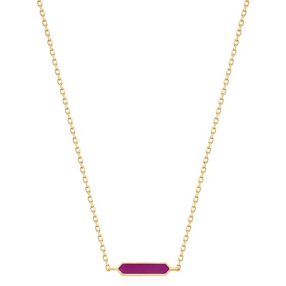 Collana in argento dorato con centrale di 1 cm in smalto viola