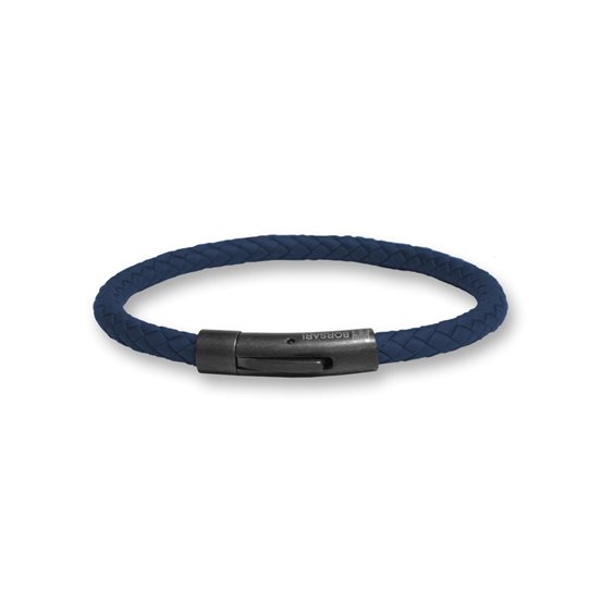 Bracciale in caucciù intrecciato blu e chiusura in acciaio brunito cm 19