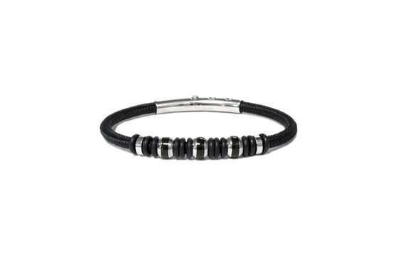 Bracciale in acciaio/ poliestere NERO/smalti NERI CM. 19