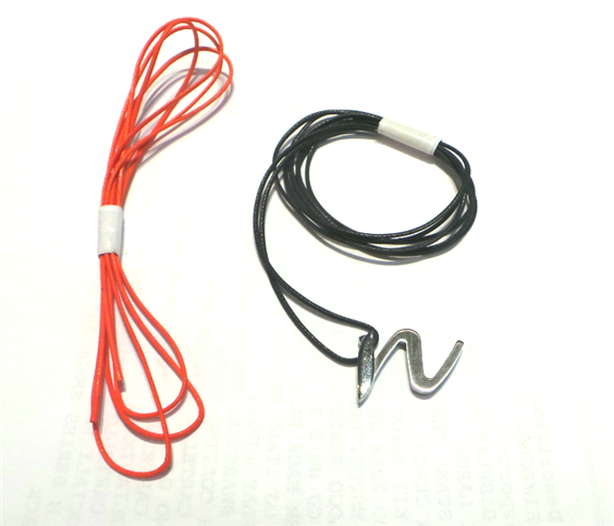 Ciondolo con iniziale, fornito con doppio cordino in cotone nero e arancione.