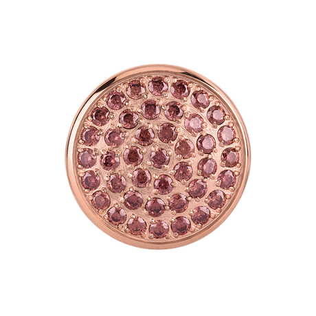 Forma tonda in acciaio con trattamento ip oro rosa e pavè di zirconi taglio brillante fumè, misura BIG (diametro 14mm). Compatibile con tutte le basi Breil Stone. Sistema di aggancio e sgancio a calamita.
