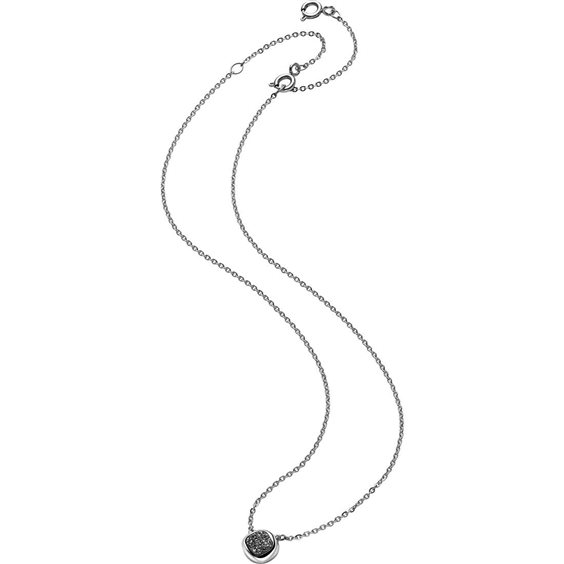 Collana in acciaio lucido con particolare in acciaio lucido e pietra nera. Chiusura con moschettone da entrambi i lati. Lunghezza totale cm 46.