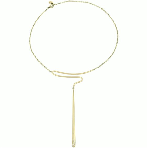Collana In Acciaio Ip Oro Con Pendente In Acciaio Satinato Ip oro Con Cristalli oro E Bianchi. Gioiello Della Lunghezza Totale Di 48 Cm Regolabile A 39 Cm, 42 Cm E 46 Cm. Chiusura A Moschettone