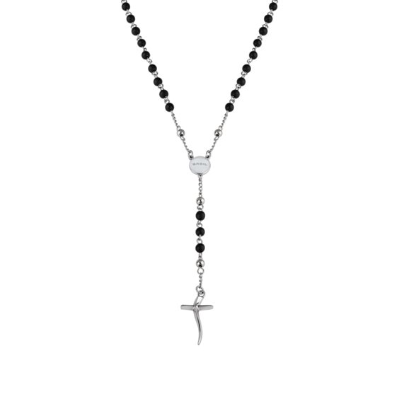 La collana rosario da uomo Code è resa inusuale dall'accostamento dell'acciaio con una pietra antica e lucida: l'onice. Un accessorio decisamente trendy per "dissacrare" anche i look più formali. Il dna di Breil è fortemente riconoscibile nel design della croce. Lunghezza massima: 63 Cm.
