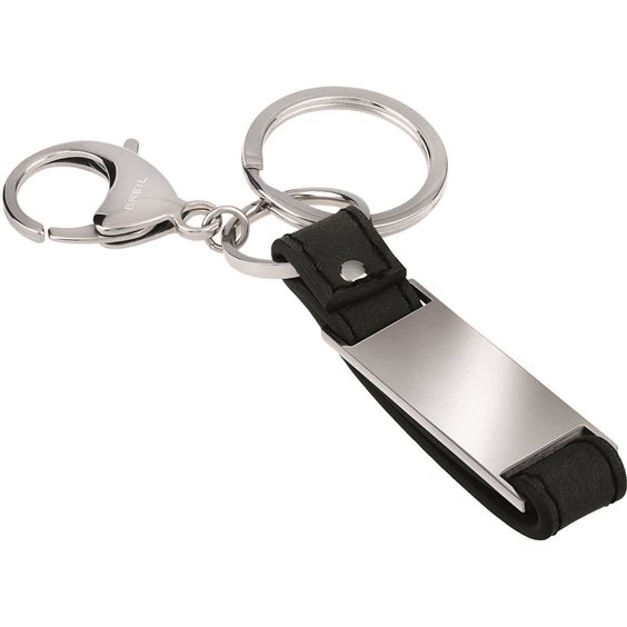 Portachiavi uomo Breil della collezione B-mix realizzato in acciaio con dettagli in pelle nera con anello e moschettone