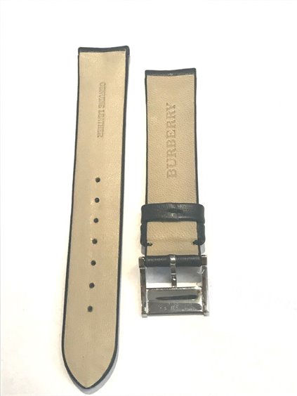 Cinturino in pelle d'agnello morbidissima nera, con ardiglione in acciaio con inciso il check di Burberry.