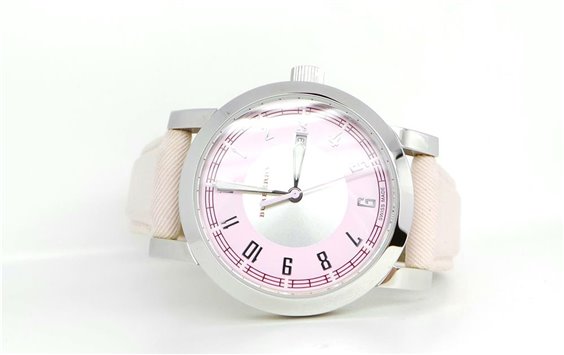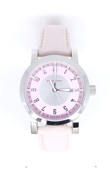 Orologio al quarzo, movimento svizzero, cassa in acciaio mm32, 100 m , 3 sfere con datario. quadrante bicolore in tonalità con il cinturino realizzato in tessuto rosa e chiusura logata. 2 anni di garanzia.