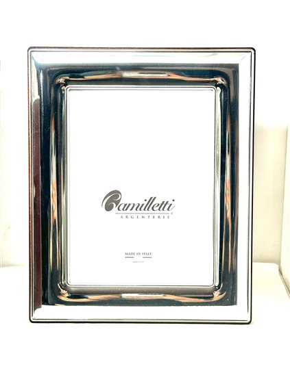 Cornice in argento liscia con retro in legno e spazio per foto da 14x19cm