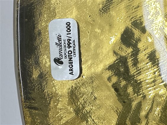 piatto in vetro oro e argento 999, depositato con metodo sputtering.