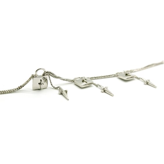 Bracciale Cesare Paciotti in argento 925 con luchetto e spadini pendenti. Cod. prodotto: jpbr0229b