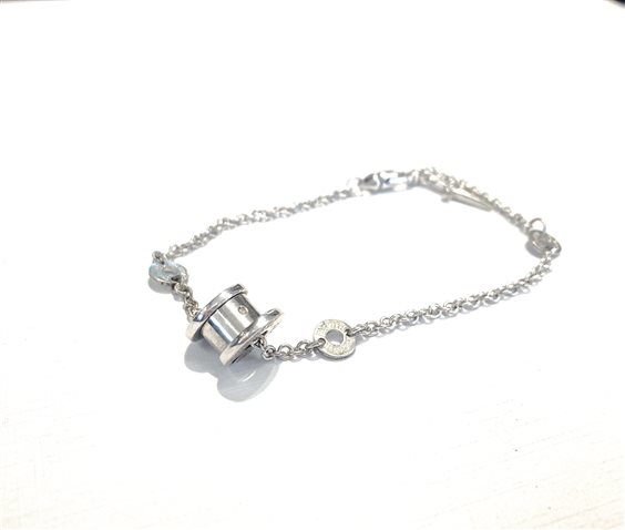 Bracciale in argento con catenella e ciondolo centrale tubolare con diamantino.