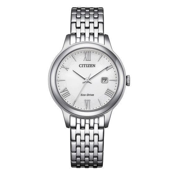 Orologio Donna solo tempo collezione LADY. Cassa in acciaio lucido .Movimento Eco-Drive a carica luce con riserva di carica 180 giorni. Vetro minerale. Quadrante bianco indici e lancette lucide data a ore 3. Bracciale regolabile in acciaio lucido chiusura deployante con pulsanti. Impermeabile 10 bar(10 atm). Scatola e Garanzia 5 anni originali.