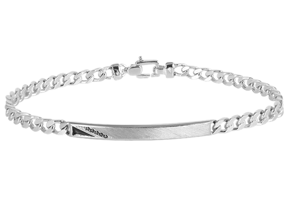 Bracciale in argento con targhetta con spinelli neri e smalto.