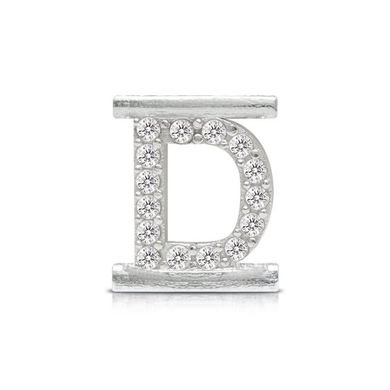 Lettera "D" da inserire nel bracciale rigido Eleonora Giordani. Argento 925% con zirconi.