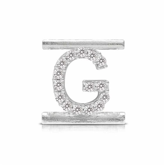 Lettera "G" da inserire nel bracciale rigido Eleonora Giordani. Argento 925% con zirconi.