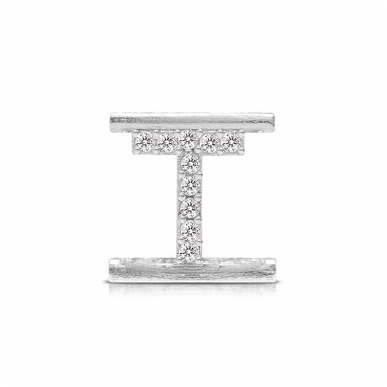 Lettera “T” da inserire nel bracciale rigido Eleonora Giordani. Argento 925% con zirconi.