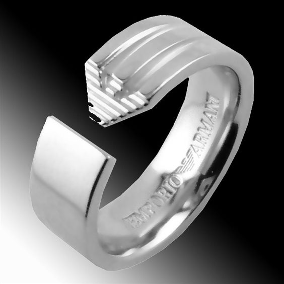 Anello in argento lucido aperto di Armani con logo ad aquila. Alto 7 mm.