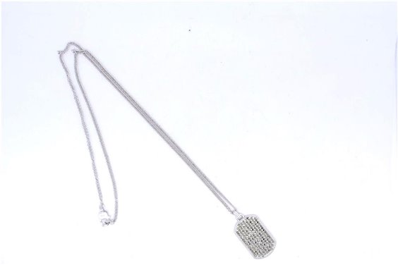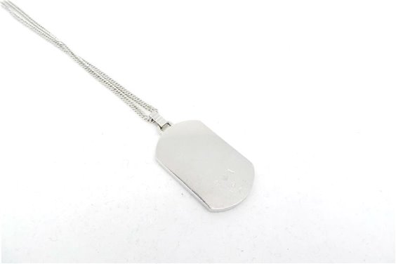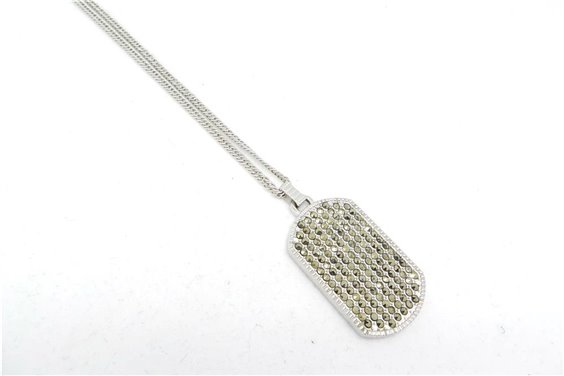 Targa su catena in argento e pietre in marcasite, molto luminosa, montata su catena in argento tipo groumette cm 60. Dietro è possibile incidere, cm 3*2.