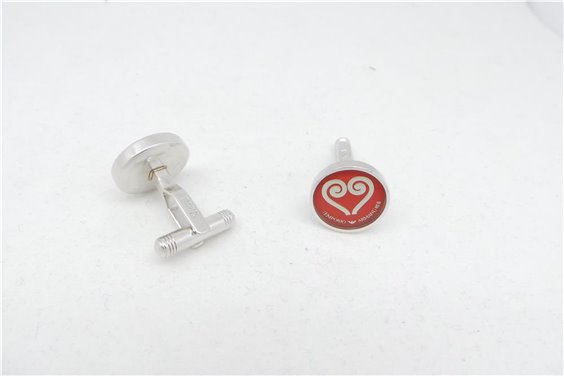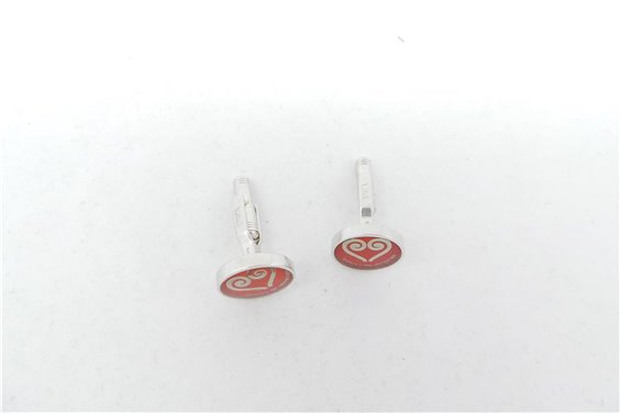 Gemelli in argento 925 con bottone in rosso e argento protetti da plastica trasparente. Diametro 15 mm.
