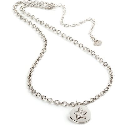 Collana rolò con ciondolo rotondo con stella di zirconi. Lunghezza catena 38-45 Cm
