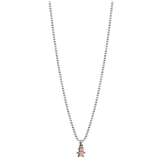 Collana in argento con ciondolo a forma di bimbo in oro rosa 9 kt.