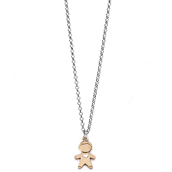 Collana con maglia rolò diamantata in argento con bambino appeso da 1.6 cm rodiato in oro rosa.