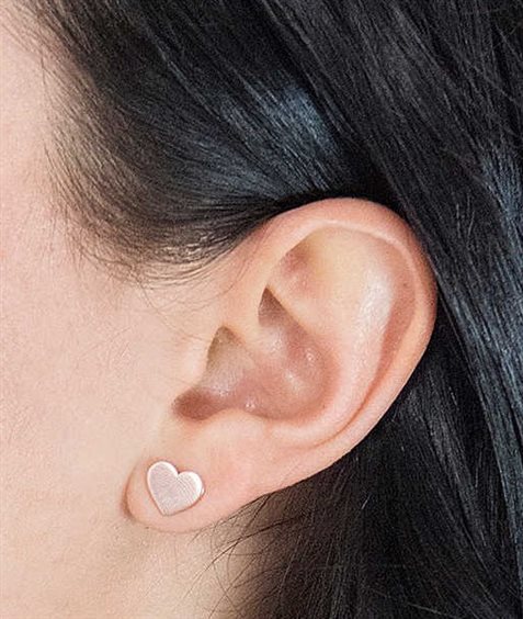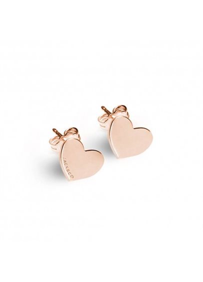 Orecchini in argento rodiati in oro rosa a cuoricino piatto di 1 cm.