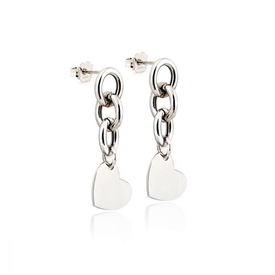 Orecchini con catena e cuore piatto con 1 cm