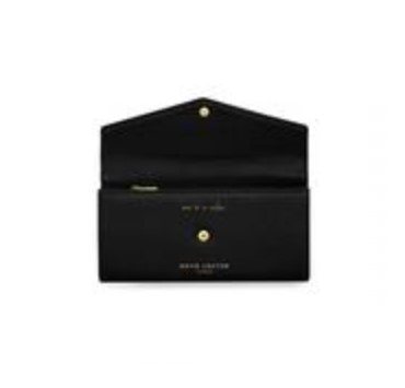 Portafoglio a busta con clip con doppio scompartimento e tasca con zip centrale. 10 taschine per carte e due più grandi. Realizzato in 100% pelle vegana con texture a ciottolo. Interno completamente foderato con cuciture rifinite. Scritta in oro carattere chic One in a Million