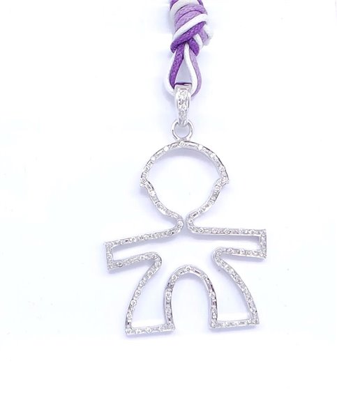 Ciondolo maschietto Le Silhouette in oro bianco 18 kt con diamanti taglio brillante per un totale di 0,40 punti di carato. Altezza totale 3,5 cm larghezza cm 3. Certificato di garanzia originale per le pietre.