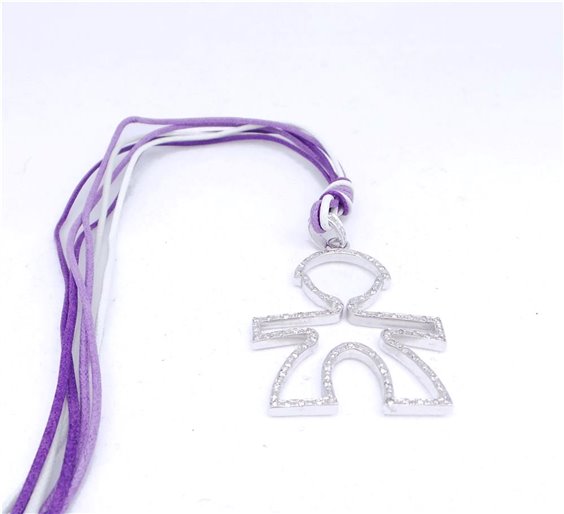 Ciondolo maschietto Le Silhouette in oro bianco 18 kt con diamanti taglio brillante per un totale di 0,40 punti di carato. Altezza totale 3,5 cm larghezza cm 3.