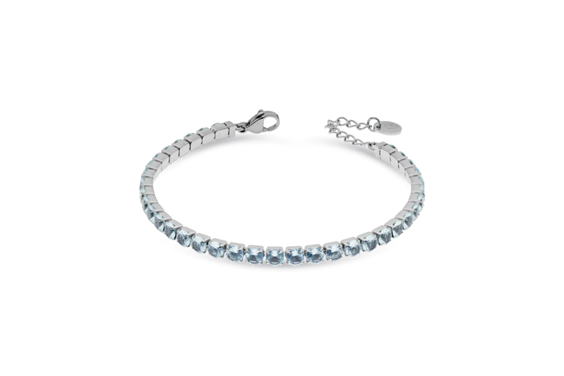 Bracciale tennis donna liu jo, lj2426, collezione essential, in acciaio con zirconi celesti, lunghezza 17+3