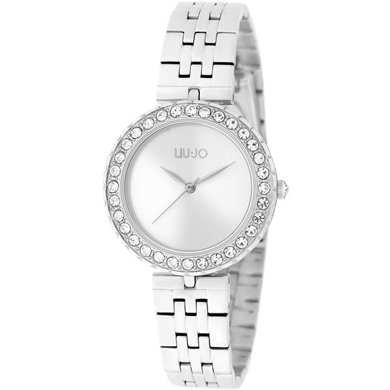 Cassa rotonda in acciaio inox con finitura lucida dal diametro di 32 mm. Lunetta impreziosita da cristalli bianchi. Quadrante analogico silver con tre lancette. Cinturino in acciaio anallergico; chiusura deployante con pulsanti. Resistente all'acqua fino a 30 metri di profondità. Appartiene alla collezione Crystal Chic.