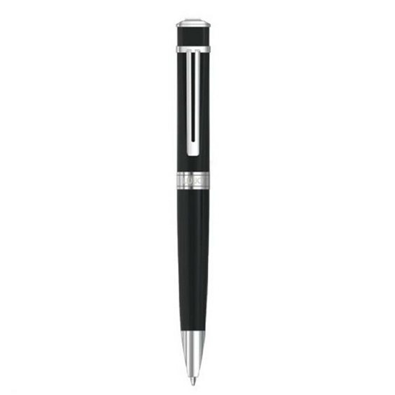 Penna biro nera, in smalto nero squadrata con logo sul tappo.