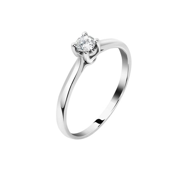 Anello solitario in oro 9 kt con diamante ecologico da 0.15 pt. Gli anelli Live Diamond, in oro bianco e diamanti accresciuti in laboratorio, sono i gioielli iconici e attenti alla sostenibilità. La scelta ideale per coronare un momento da ricordare per sempre nel rispetto della natura che ci circonda. Questi diamanti non hanno nulla da invidiare ai diamanti estratti: purezza e lucentezza sono le stesse, ottenute grazie ad un processo tecnologico che accelera ciò che la natura crea in migliaia di anni.