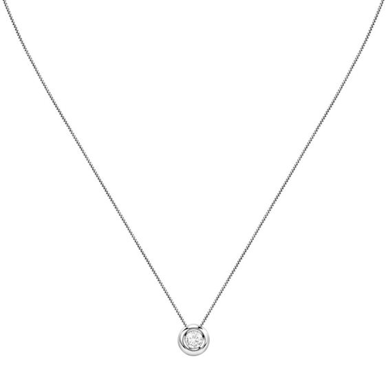 Collana in oro bianco 375/.. e diamante ecologico creato dalla Morellato Live Diamond, nel modello realizzato a cipollina con diamante coltivato in laboratorio nel rispetto dell'ambiante e con risparmio di acqua ed energia pur rispettando le caratteristiche di lucentezza, purezza e caratura del diamante tradizionale.