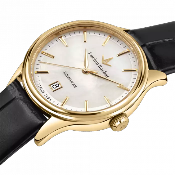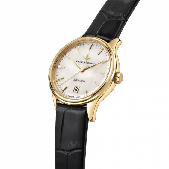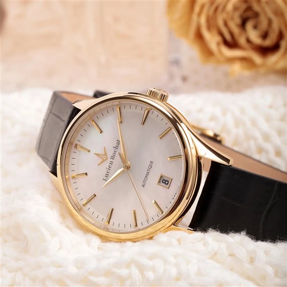 Orologio da donna con movimento Automatico. Cassa in Acciaio placcata oro rosa. Cinturino in pelle naturale colore nero.
