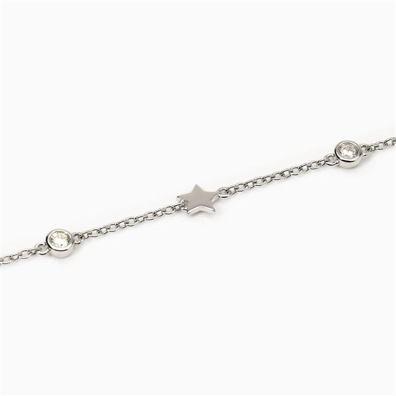 Bracciale in argento 925/°°° rodiato e zirconi. Catena maglia forzatina con inserti stelline e zirconi. Chiusura a moschettone. Misura regolabile da cm 16 a cm 19.