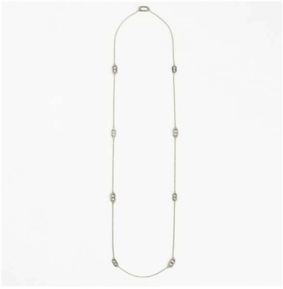 Collana lunga da donna realizzata in argento 925% con catena rolò dallo spessore di 1,9 mm. Elementi dalle dimensioni di 13 mm x 7,35 mm e 16,1 mm x 9,1 mm impreziositi da zirconi bianchi. Lunghezza di 100 cm. Chiusura con moschettone.