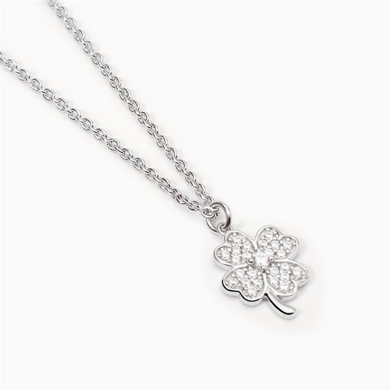 Girocollo in argento 925/ººº rodiato con catena forzatina 1.5 mm, pendente quadrifoglio 11x13 mm e zirconi Ø 2 e 1.25 mm, lunghezza regolabile da 40 a 45 cm