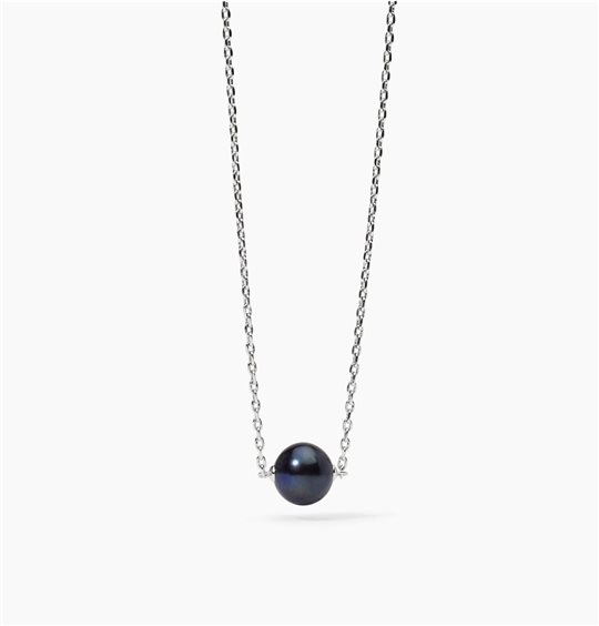 Collana in argento 925/°°° rodiato con catena forzatina 1 mm e perla coltivata nera Ø 8.5-9 mm, lunghezza 50 cm