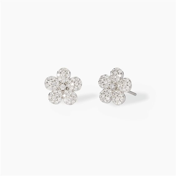 Orecchini a fiore in zirconi Orecchini in argento con fiore in zirconi bianchi. • Dimensione orecchino: 11,4x11 mm • Diametro zirconi: 1 e 2 mm • Materiale: Argento rodiato 925, Zirconi