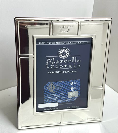 Cornice in argento e legno, con 25° di anniversario.