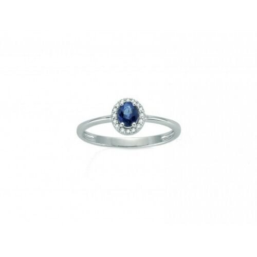 Anello in oro bianco 18 carati Miluna, l'anello è impreziosito da uno zaffiro di carati 0,45 di millimetri 4 x 4 e sedici diamanti di carati totali 0,06 colore G purezza SI taglio brillante rotondo,P per un totale di 0.96 di diamanti.