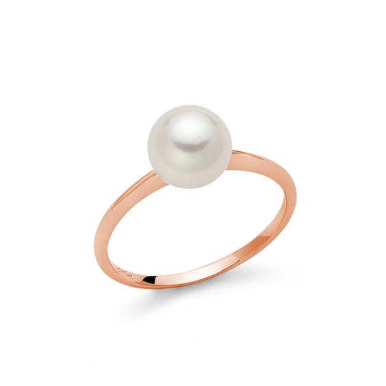 anello in oro rosa 750/.. con perla bianca di acqua dolce 7,5-8