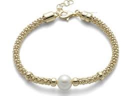 Bracciale in argento 925 placcato oro giallo 18 kt con perla coltivata bianca ø 9-9,5. Lunghezza bracciale da 19 cm fino a 21 cm grazie all’uso degli anellini di allungo presenti nell’estremità vicino alla chiusura. gioiello della collessione MISS ITALIA